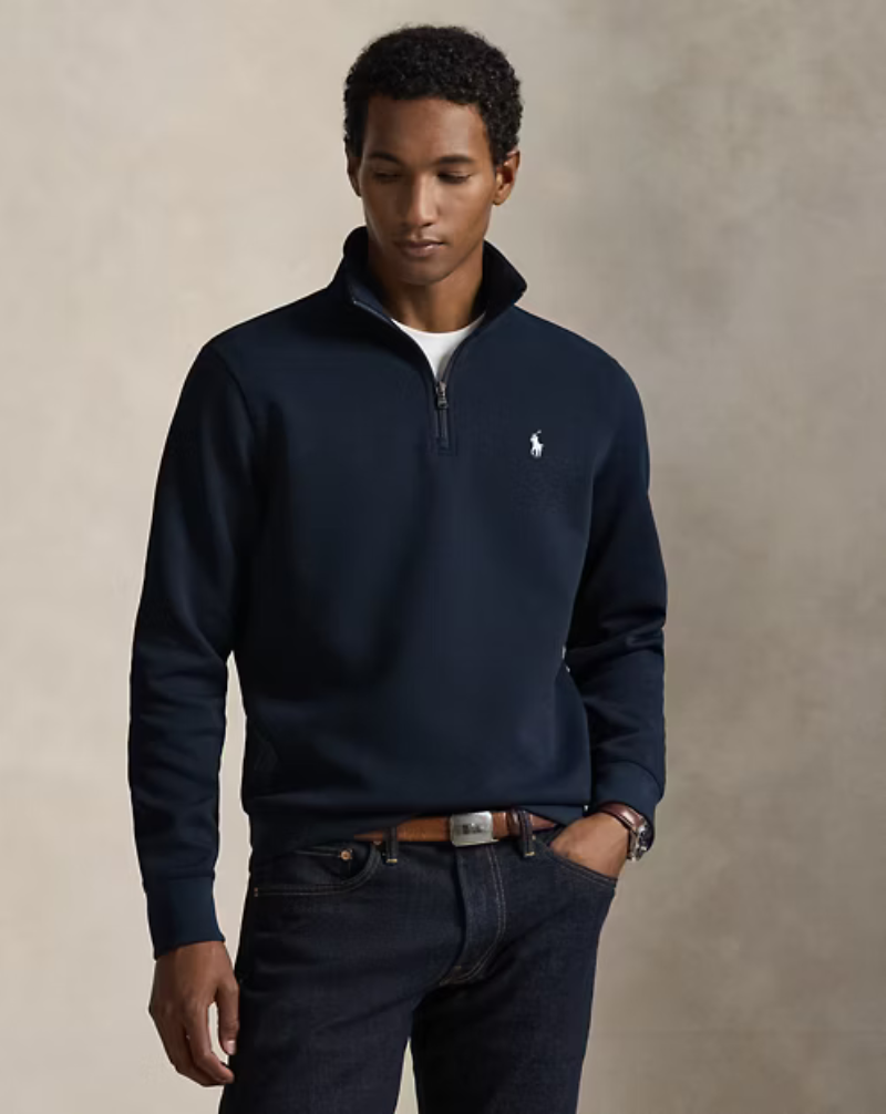 Designed with a mockneck and quarter-zip fastening, it offers versatile layering potential — equally at home over a crisp shirt or a casual tee. The signature embroidered Pony at the chest lends an unmistakable touch of Polo Ralph Lauren heritage, while ribbed cuffs and hem ensure a clean, polished fit.